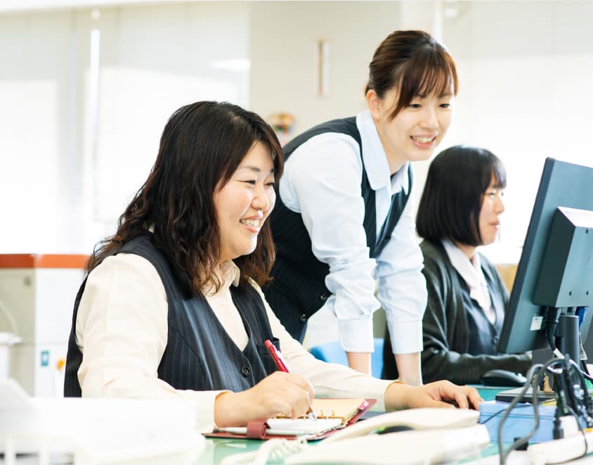DCM各店の営繕工事、農業用ハウスの建設工事、特需商材(体育館用鋼製床、フローリング、屋根トラス、プール、厨房設備等)の販売・工事などを行う特需部門で、主に事務職として営業さんのサポートを行っています。一言に事務といっても業務は幅広く、営繕工事では補修部材の確認からメーカーへの価格折衝、発注まで、農業用工事では資材の販売や工事に関わる伝票処理、請求書作成、入札準備の書類作成など、多岐にわたります。裏方として現場の仕事を全力でバックアップしています。
