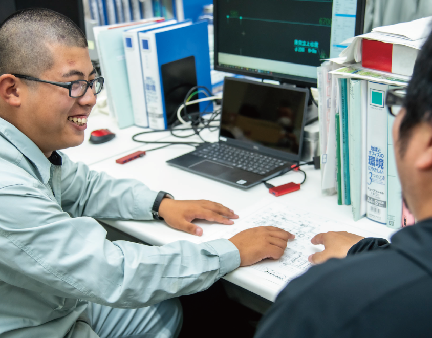 今はFRP処理槽の施工管理がメインですが、将来的にはRC造排水処理槽の施工管理ができるようになりたいです。RC造は、現場内でコンクリートを流し込んで処理槽を製作するため、事前に配管がどこを通るかを考えてスリーブという穴を用意したり、槽内の壁面がガスで腐食しないように防食工事を行ったりと、やることや考えることが格段に増えます。苦手な書類も増え、監督業務も段違いに多くなりますが、そこを目指したいと思っています。施主さんや元請けさんにも好かれて、いい雰囲気で現場をおさめられるような施工管理技士になりたいです。