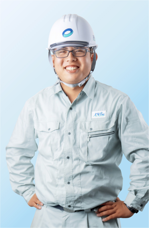 愛媛県出身。工業高校卒業後、入社。西日本工事部の工事一課でFRP排水処理槽の施工管理を担当している。 ※インタビュー当時の所属で表記しています。