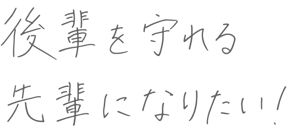 何年後になるかは分かりませんが、いつか後輩を守れるような上司になりたいと思っています。僕自身、入社以来すごく環境に恵まれてきました。住設のことを何も分からず飛び込んできて、もちろん大変なこともありましたが、辞めたいと思ったことはありません。しんどい時も居心地のいい環境をつくってくれる先輩方がいたからこそ頑張れたのだと思います。分野は違っても自分の経験を活かせる場面は必ずあります。頑張っている仲間が「この人がいるから頑張ろう」とお互いに思えるような、いい職場環境、いい人間関係をつくっていきたいと思います。